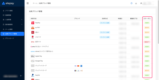 管理画面をご利用中の加盟店様につきましては、以下手順にて審査状況をご確認いただけます