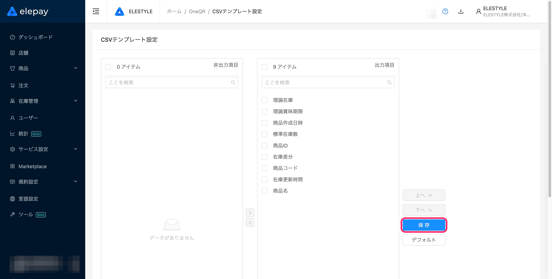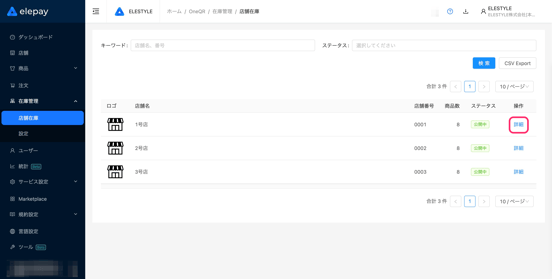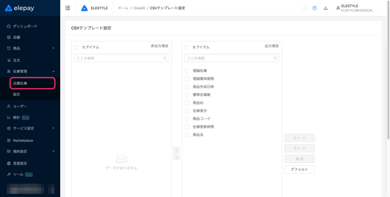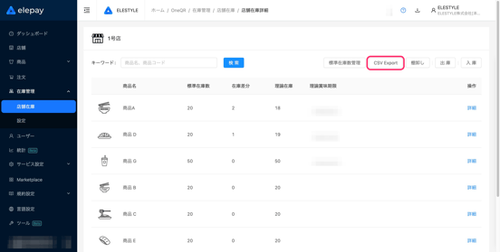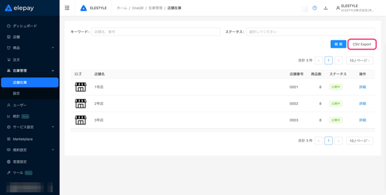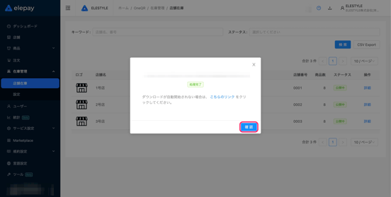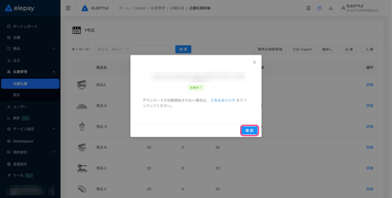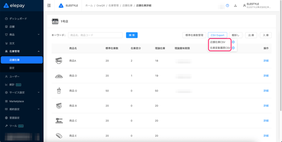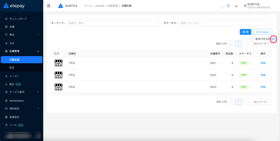 店舗商品CSV :店舗ごとに登録されている商品情報が確認できるファイル