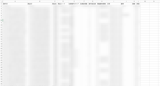 在庫変動履歴CSV:指定した期間で店舗の在庫が変動した履歴を出力するファイル