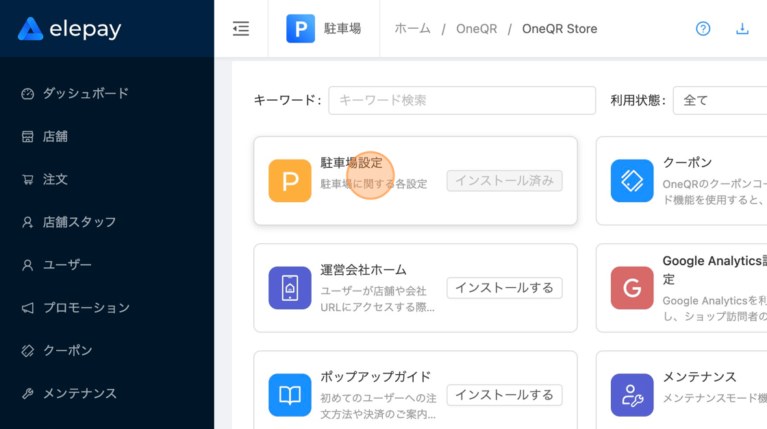 1. 設定されたい駐車場を選択し、「OneQR」をクリックしてください。